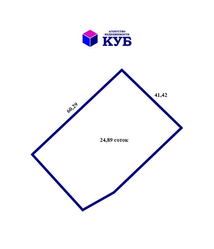 Геометрия участка: прямоугольная форма с лёгким трапециевидным расширением. Размеры по периметру: 60.29х41.42 метров. С 3 сторон огорожен соседскими заборами. Все коммуникации рядом.