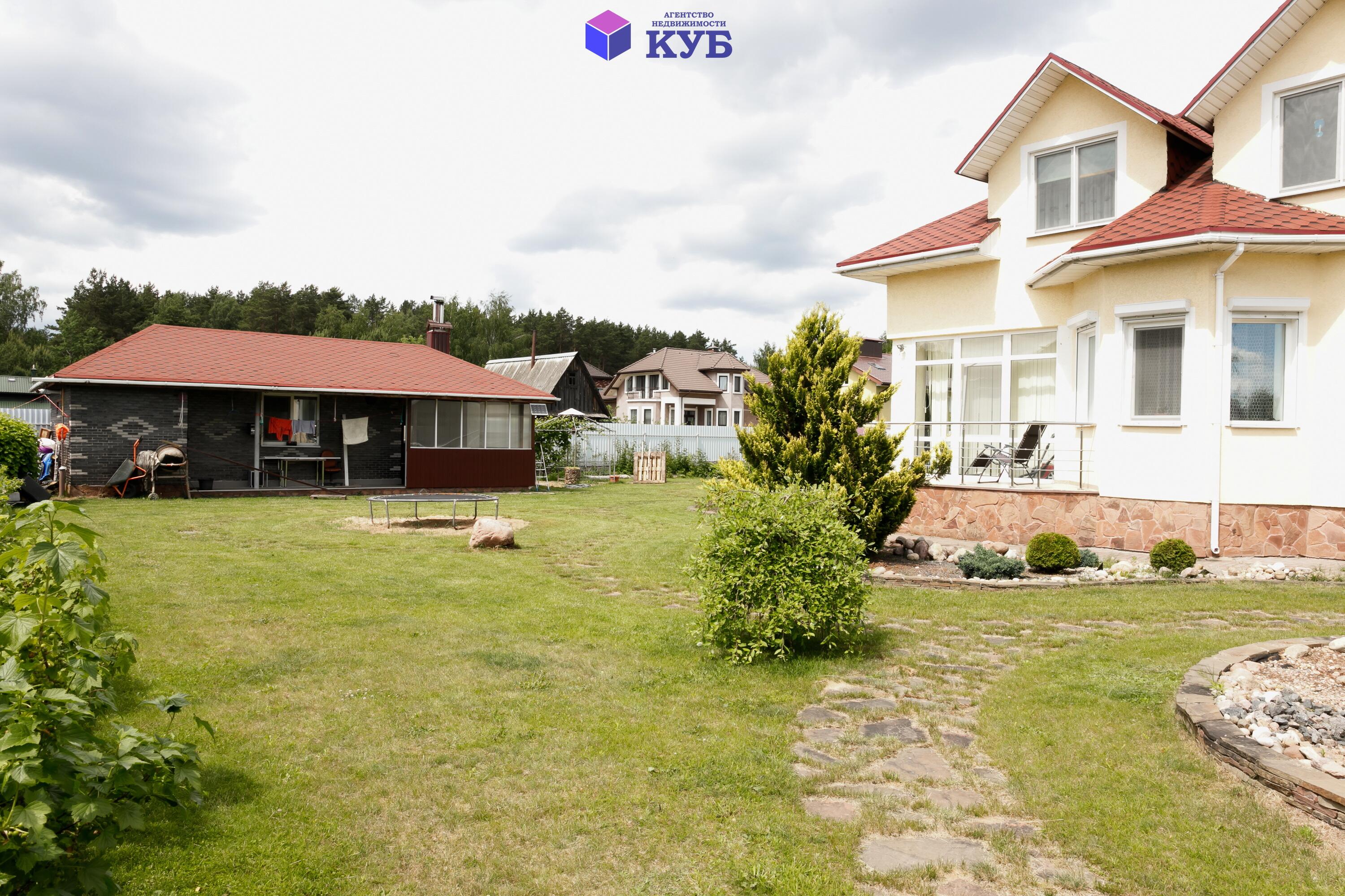 Продаётся коттедж 329 кв. м(с цокольным этажом 86 кв. м и тёплым гаражом на два авто) и гостевой дом с банькой (хозблок) 72 кв. м в п. Колодищи в районе полигона в 6 км. от Минска.
