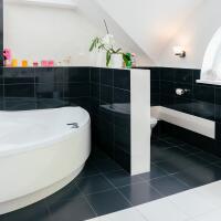 Полы в доме: бетонная стяжка, плитка керамогранит, установлена система тёплых полов.