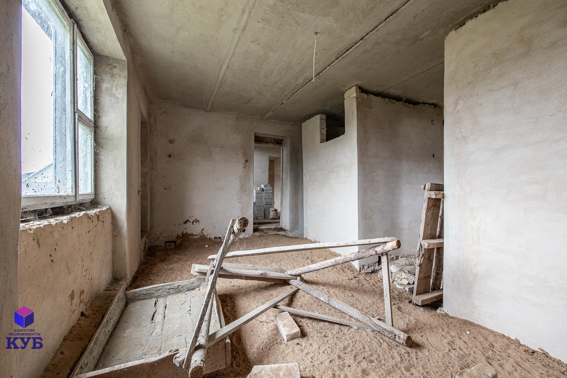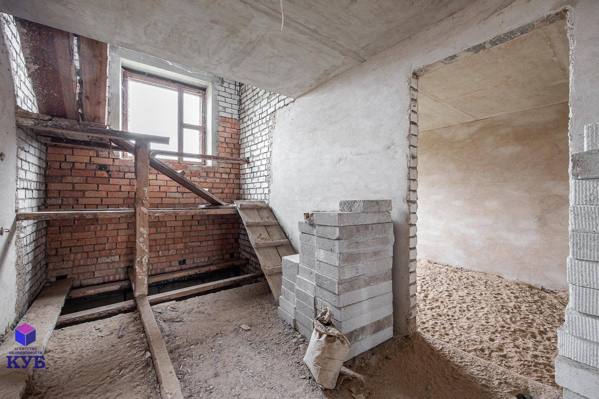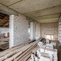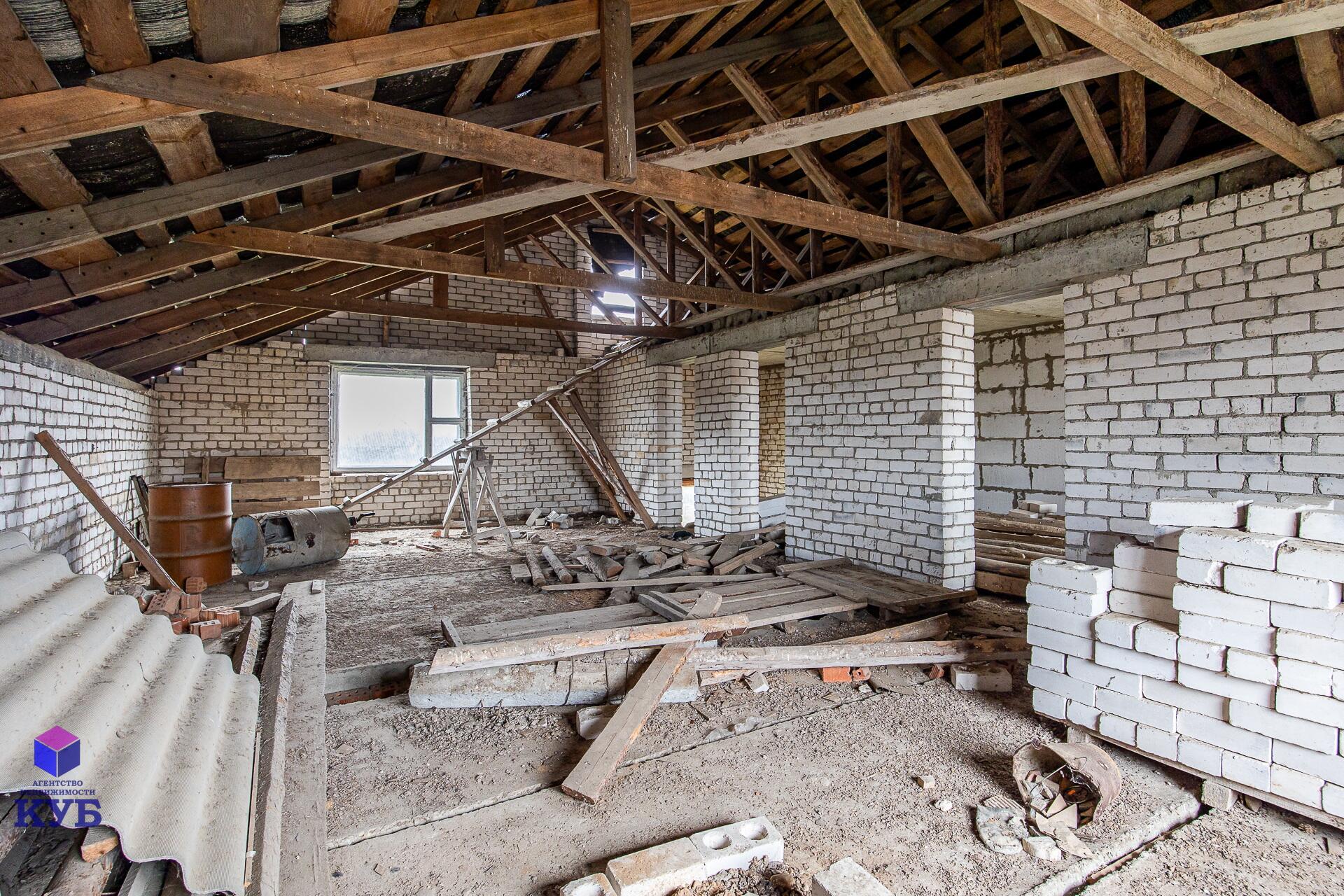 ✅ Фундамент: ж/б плиты ФБС толщиной 40 см. Стены дома из силикатного кирпича (толщина стены в 2 кирпича), перекрытия между этажами – ж/б плиты, стеновые перегородки выполнены из кирпича и газосиликатных блоков, частично оштукатурены. Кровля – шифер, стропильная система – качественный брус, обрешётка.