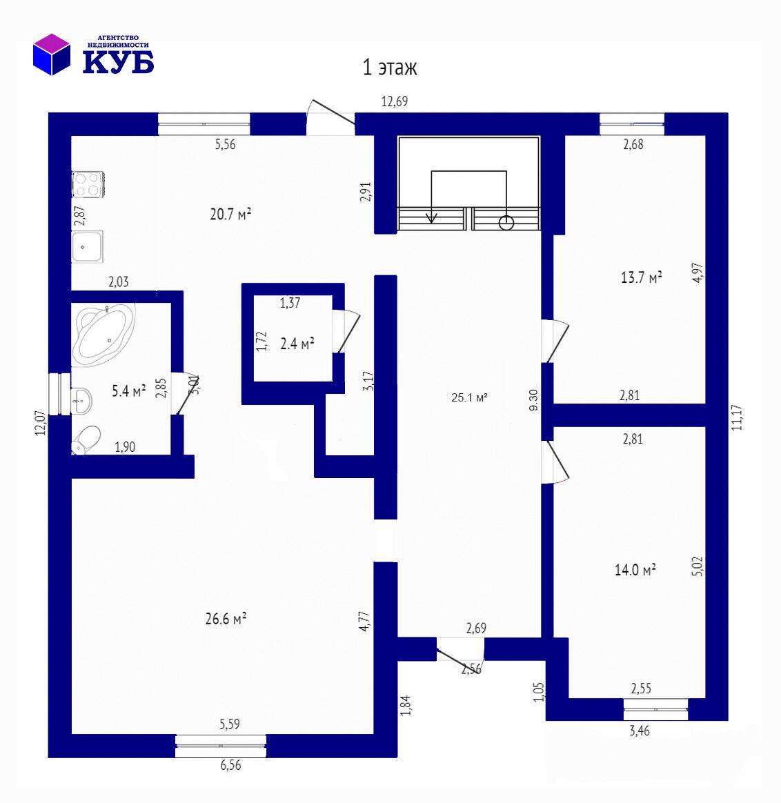 ✅ Общая площадь дома: 222.5 кв. м. На 1 этаже предусмотрена гостиная 26.6 кв. м, кухня 20.7 кв. м, санузел, вспомогательные помещения, а также 2 жилые комнаты 13.7 кв. м и 14 кв. м и топочная. На 2 этаже гостиная 61.5 кв. м и жилая комната со спальней по 14.3 кв. м каждая.