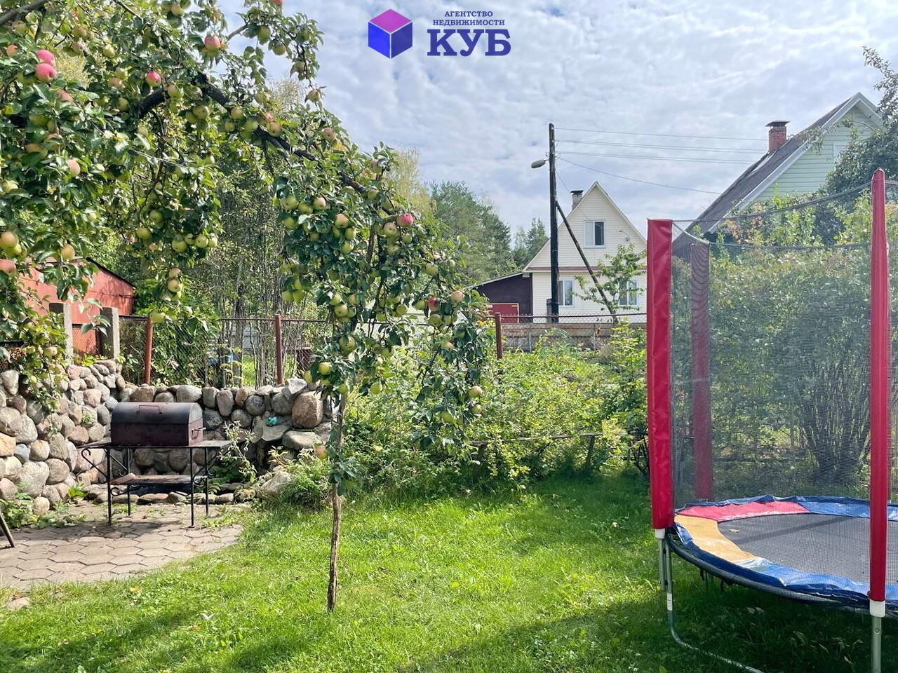 Участок 4,4 сотки правильной формы в частной собственности. На территории растут садовые деревья и кустарники. Участок огорожен, есть калитка и отдельный заезд для авто с откатными воротами.