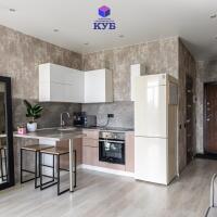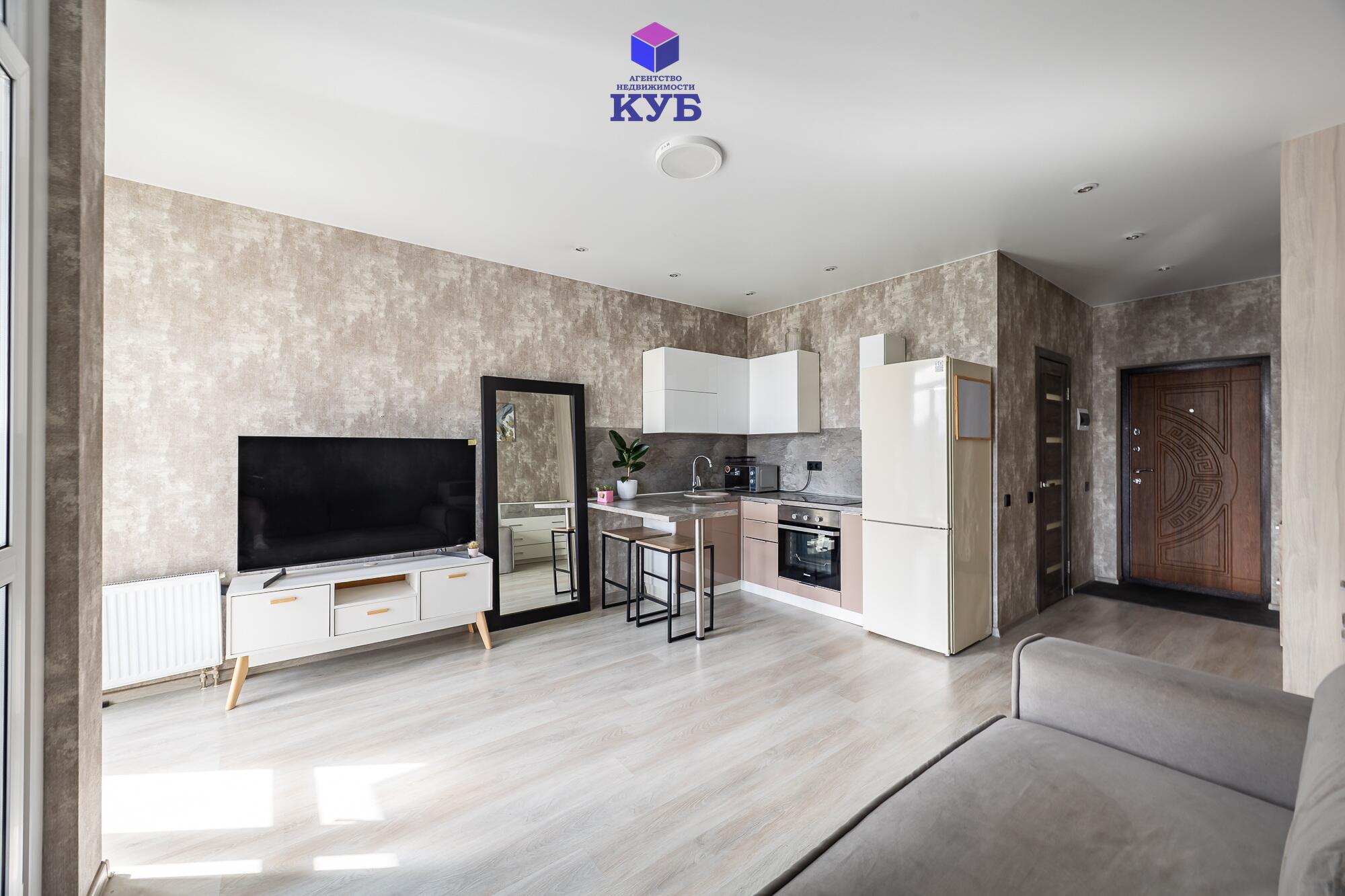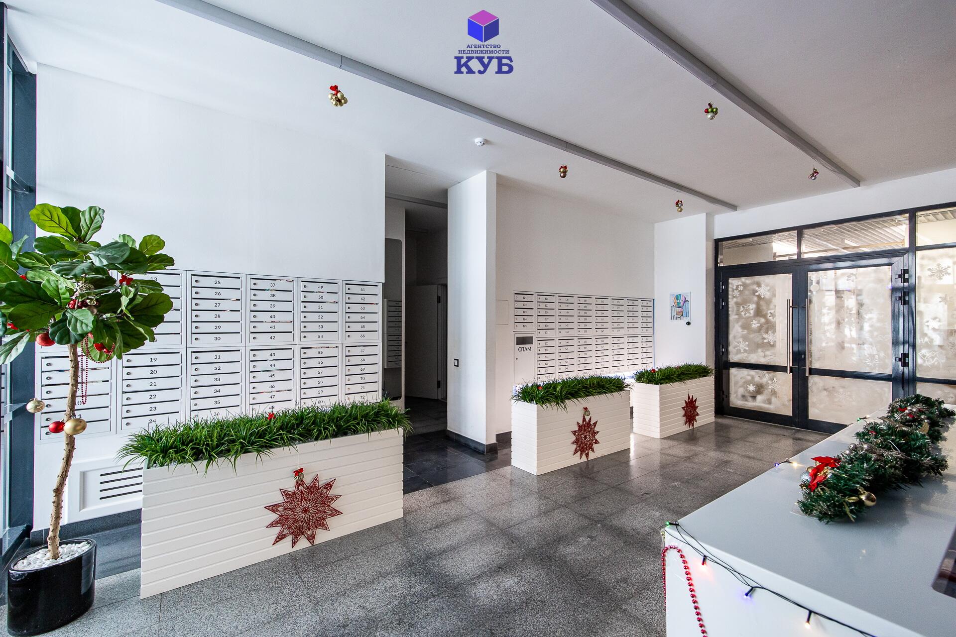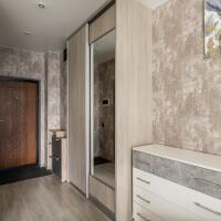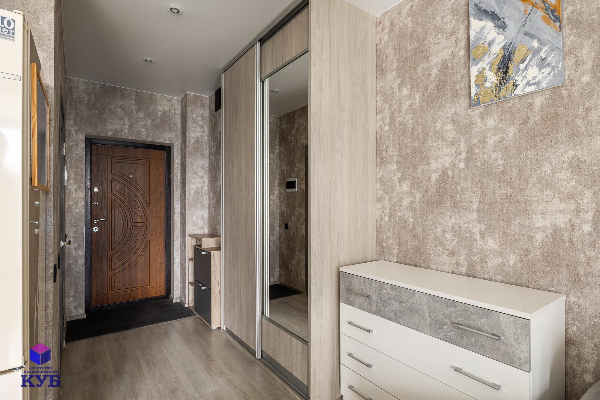 Стеклопакеты ПВХ 2-камерные (3 стекла), на лоджии – 1-камерный. Встроенная кухня с 4-конфорочной варочной панелью и духовым шкафом HANSA, холодильником BOSCH, барной стойкой и стульями. Пол ламинирован, потолки натяжные. Прихожая вмещает шкаф-купе и 2 комода, при этом остаётся широкое пространство. Санузел просторный, имеет всё стандартное оборудование: ванну, унитаз-инсталляцию, умывальник с тумбой и зеркалом, также остаётся шкаф в нише, место под стиральную машину с действующими выводами.