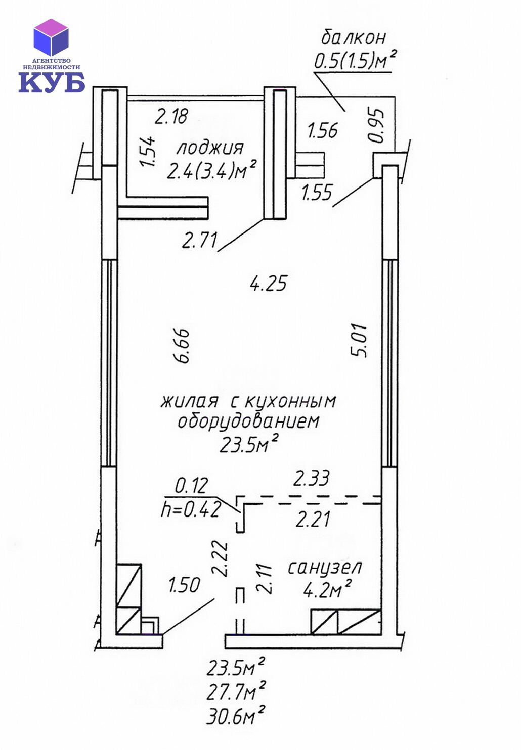 Плошадь общая / жилая / кухня | 30.6 / 23.5 / - кв.м. |